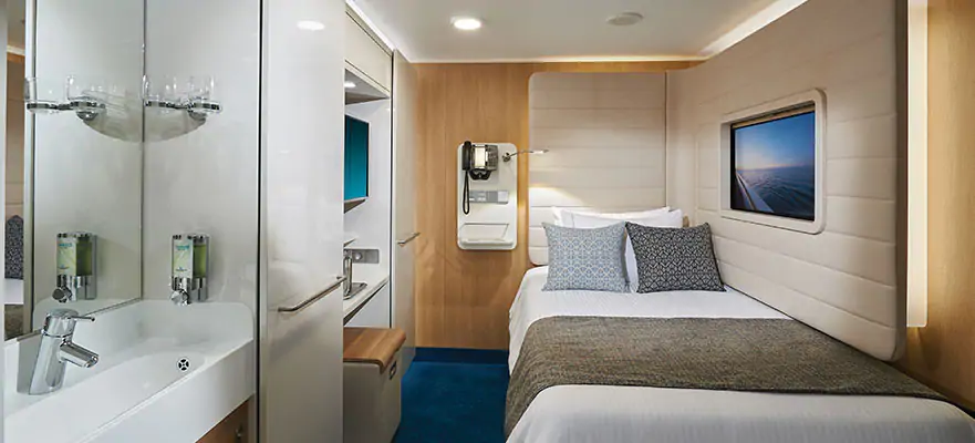 Private keycard access complex comprised of staterooms specifically designed and priced for the sol ... o traveller. Featuring a full-size bed, a virtual window and separate areas for your bathroom, sink and shower, in 100 square feet of living space. Includes access to the private Studio Lounge. No single supplement required.