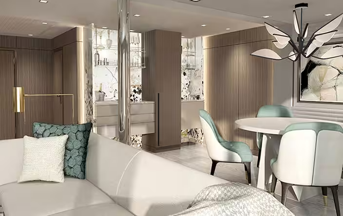 Complimentary laundry service – up to 3 bags per stateroom (some restrictions apply) Priority ... Noon ship embarkation with priority luggage delivery Exclusive card-only access to private Executive Lounge staffed by a dedicated Concierge featuring complimentary soft drinks, coffees and snacks throughout the day 24-hour Butler service Complimentary in-suite bar setup with 6 full-size bottles of premium spirits and wines from our suite beverage menu Complimentary welcome bottle of Champagne Fresh fruit basket replenished daily Priority online specialty restaurant reservations Unlimited access to Aquamar Spa Terrace iPad upon request for your enjoyment on board Optional private in-suite embarkation day lunch from noon to 2 pm in Owner’s Suites Customized entertainment system Bulgari gift set and variety of amenities Choice of daily printed newspaper Complimentary Oceania Cruises logo tote bag and personalized stationery Cashmere lap blankets Choice of pillow from a luxurious selection Complimentary shoe shine service Complimentary pressing of garments upon embarkation (certain limitations apply) Smoking in suites, staterooms and on verandas is strictly prohibited