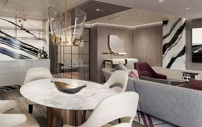 Complimentary laundry service – up to 3 bags per stateroom (some restrictions apply) Priorit ... y Noon ship embarkation with priority luggage delivery Exclusive card-only access to private Executive Lounge staffed by a dedicated Concierge featuring complimentary soft drinks, coffees and snacks throughout the day 24-hour Butler service Complimentary in-suite bar setup with 6 full-size bottles of premium spirits and wines from our suite beverage menu Complimentary welcome bottle of Champagne Fresh fruit basket replenished daily Priority online specialty restaurant reservations Unlimited access to Aquamar Spa Terrace iPad upon request for your enjoyment on board Optional private in-suite embarkation day lunch from noon to 2 pm in Owner’s Suites Customized entertainment system Bulgari gift set and variety of amenities Choice of daily printed newspaper Complimentary Oceania Cruises logo tote bag and personalized stationery Cashmere lap blankets Choice of pillow from a luxurious selection Complimentary shoe shine service Complimentary pressing of garments upon embarkation (certain limitations apply) Smoking in suites, staterooms and on verandas is strictly prohibited