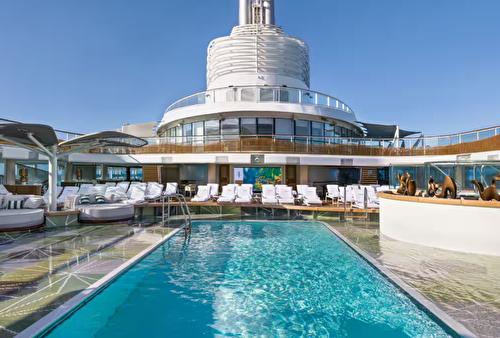 Offering the loftiest of locations that afford sweeping 180-degree views and 1,450 to 1,850 square ... feet of living space, the eight Vista Suites are designed to be the ultimate seaside villas. Swathed in subtle tones that pay deference to the sea and sky and accented by luminescent marbles, granites and rich weathered oak, each is a true retreat. The airy living room is flanked by a handsome dining room and bar area, which feature commanding views and open onto the expansive teak veranda. An extravagant master suite features a capacious wardrobe room and dressing area adjacent to the oversized and sunlit master bathroom complete with porcelain soaking tub. Vista Suites offer an additional layer of pampering with 24-hour Butler service and access to the suites-only Executive Lounge. Vista Suite Privileges In addition to Stateroom Amenities Complimentary laundry service – up to 3 bags per stateroom+ Priority 11 am ship embarkation with priority luggage delivery Exclusive card-only access to private Executive Lounge staffed by a dedicated Concierge featuring complimentary soft drinks, coffees and snacks throughout the day 24-hour Butler service Complimentary in-suite bar setup with 6 full-size bottles of premium spirits and wines from our suite beverage menu Complimentary welcome bottle of Champagne Fresh fruit basket replenished daily Priority online specialty restaurant reservations Unlimited access to Aquamar Spa Terrace iPad upon request for your enjoyment on board Customized entertainment system Bulgari gift set and variety of amenities Choice of daily printed newspaper Complimentary Oceania Cruises logo tote bag and personalized stationery Cashmere lap blankets Choice of pillow from a luxurious selection Complimentary shoeshine service Complimentary pressing of garments upon embarkation++