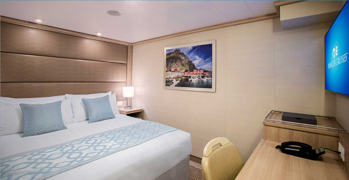 Approximately 166 to 175 sq. ft., this well appointed interior stateroom provides fine amenities. T ... hese staterooms are the perfect place to recharge your batteries. Our most affordable option, featuring two twin beds or a queen-size bed. Other amenities include a refrigerator, hair dryer, TV, closet and bathroom with shower. Comfortable queen or two twin beds Refrigerator Flat-panel television Private bathroom with shower 100% cotton, high-thread count linens Complimentary 24-hour room service Spacious closet Desk with chair Hair dryer & bathroom amenities Digital security safe
