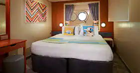 These Oceanview Staterooms have room for up to four guests, with two lower beds that convert into a ... queen-size bed and additional bedding to accommodate up to two more guests. You’ll also have a porthole to enjoy an awesome view, and some can connect for added convenience.