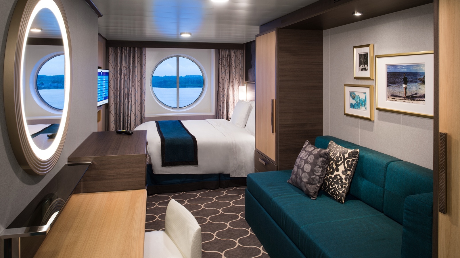 All staterooms and suites come complete with bathroom, vanity area, hair-dryer, TV and phone. Two t ... win beds that convert to a Royal King bed One double sofa bed in staterooms with up to 4 guests. Stateroom: 149 sq. ft.